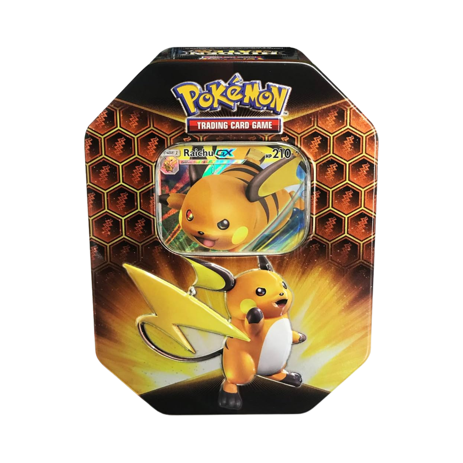 - Packaged in a Raichu-themed collectible tin